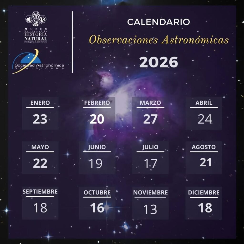 La Sociedad Astronómica Dominicana realiza noches de observación astronómica mensuales en el Museo Nacional de Historia Natural, de acuerdo con el calendario astronómico del mes.